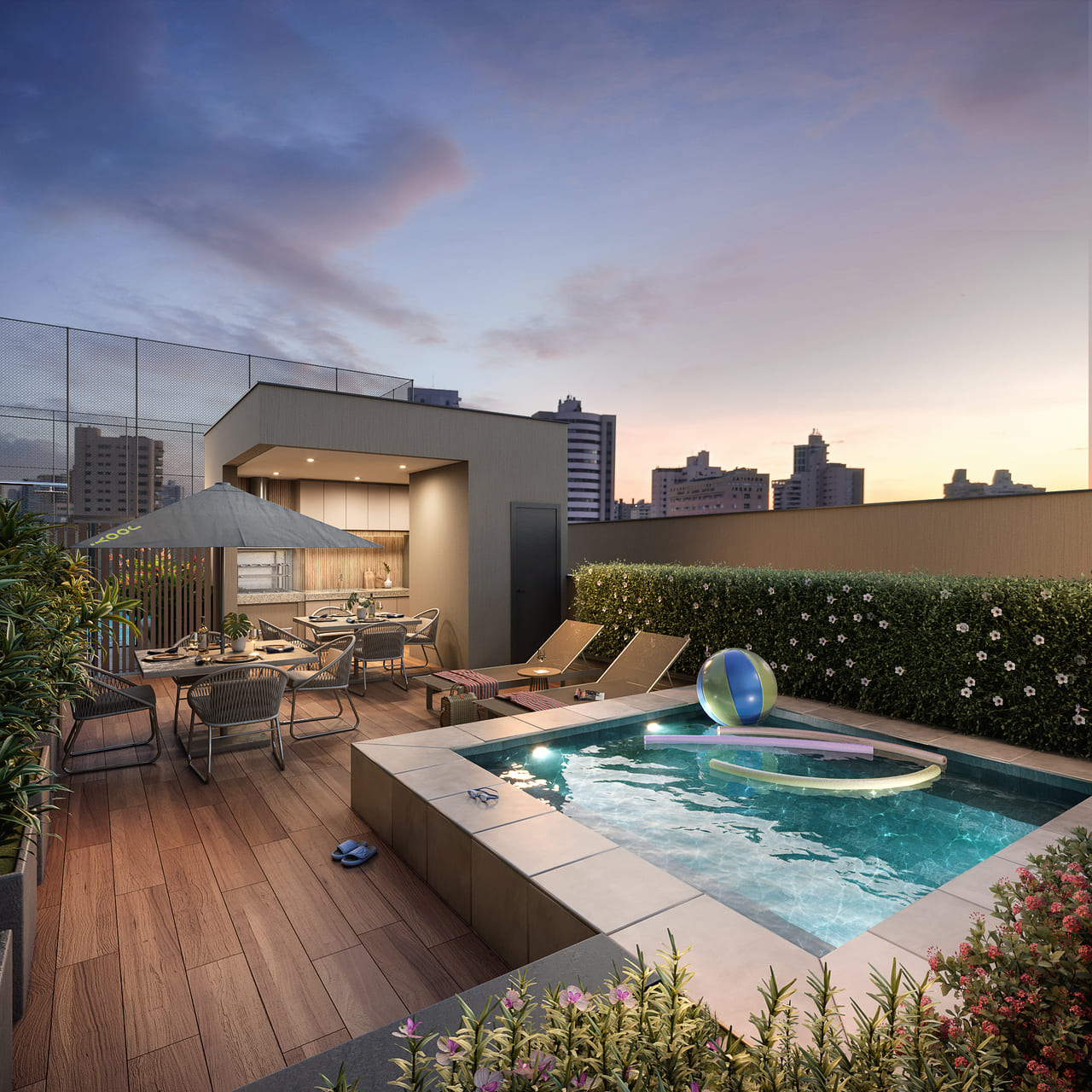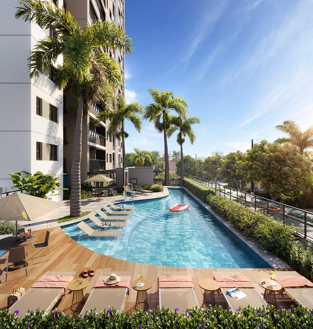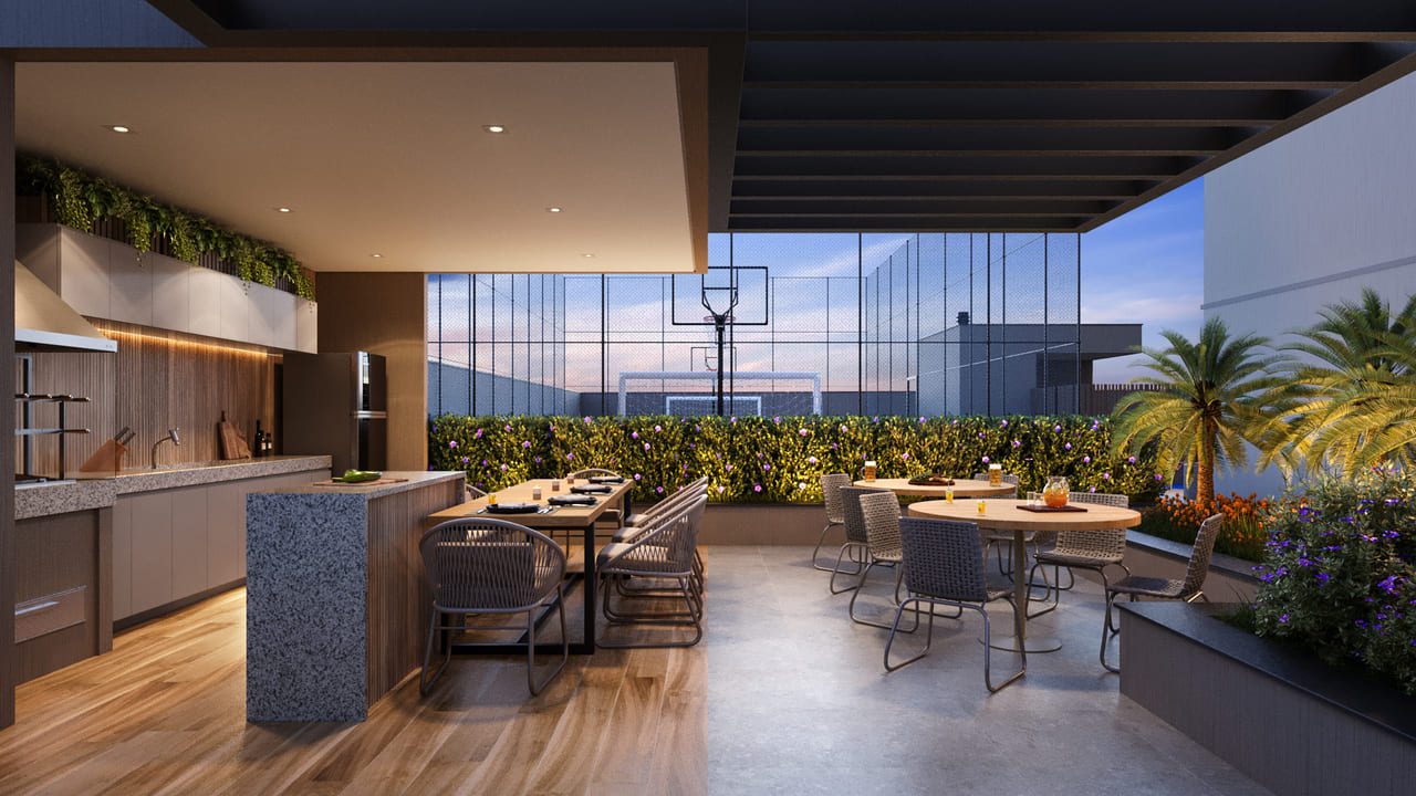 Imagens preliminares. Todos os itens que compõe o projeto serão entregues conforme memorial descritivo do produto e compromisso de compra e venda. Materiais, vegetação e mobiliários poderão sofrer pequenas alterações conforme disponibilidade de mercado. Na entrega do empreendimento essa vegetação poderá apresentar diferenças de tamanho e porte, mas de acordo com o projeto paisagístico imagens meramente ilustrativas. R.04/M: 281.424, 1º CRI