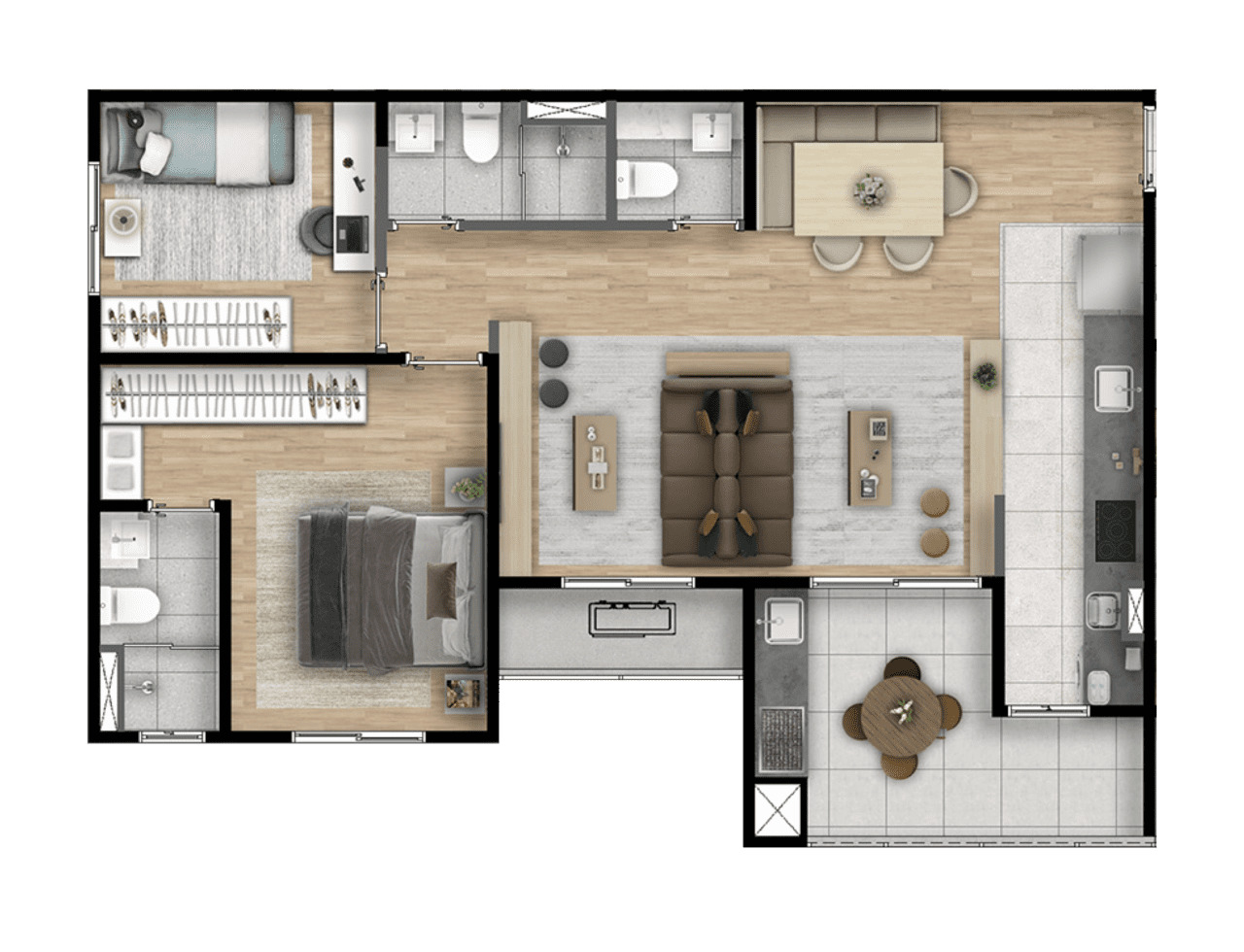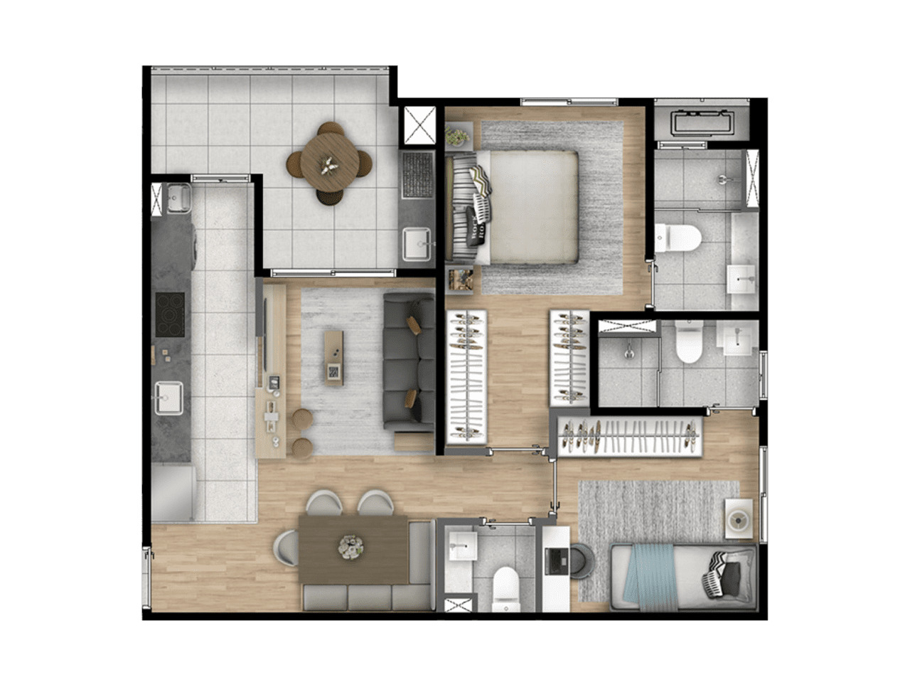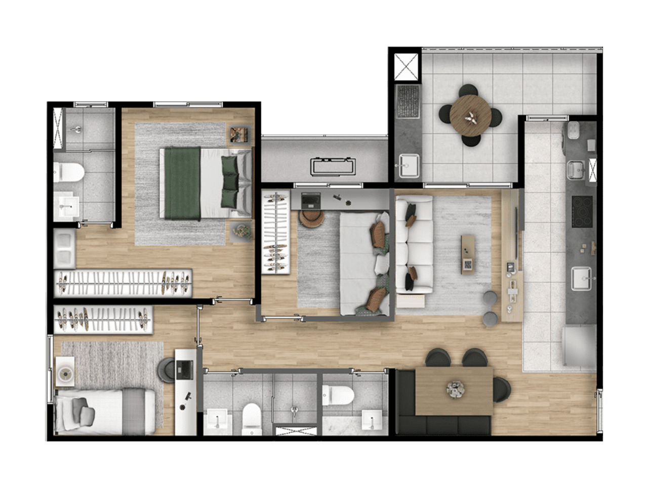 Imagens preliminares. Todos os itens que compõe o projeto serão entregues conforme memorial descritivo do produto e compromisso de compra e venda. Materiais, vegetação e mobiliários poderão sofrer pequenas alterações conforme disponibilidade de mercado. Na entrega do empreendimento essa vegetação poderá apresentar diferenças de tamanho e porte, mas de acordo com o projeto paisagístico imagens meramente ilustrativas. R.04/M: 281.424, 1º CRI